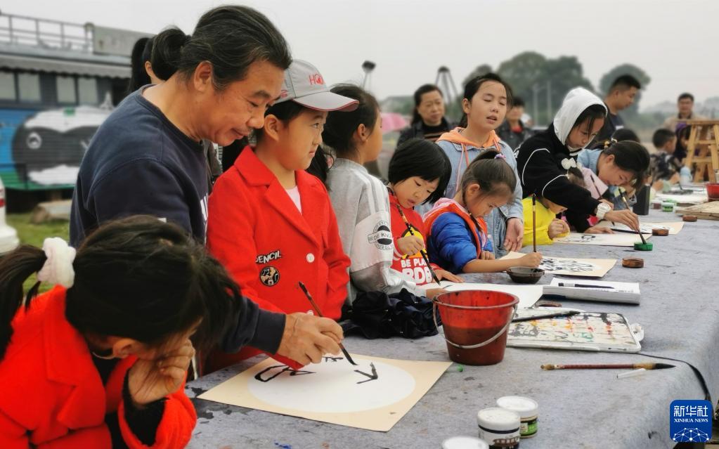 10月31日,許國良(左二)在湖南省益陽市資陽區(qū)張家塞鄉(xiāng)富民村為當?shù)亓羰貎和厦佬g課。新華社發(fā)(孫國基攝)