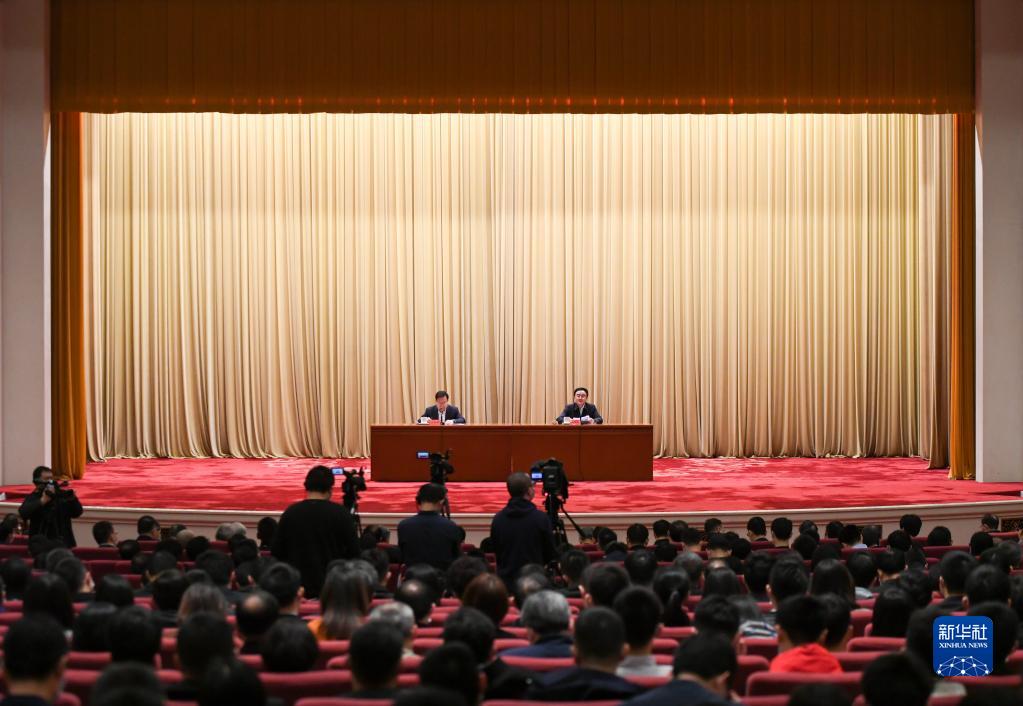 2021年3月16日,黨史學(xué)習(xí)教育中央宣講團(tuán)首場(chǎng)報(bào)告會(huì)在北京舉行。這是中央宣講團(tuán)成員、中央黨史和文獻(xiàn)研究院院長(zhǎng)曲青山(右)在報(bào)告會(huì)上作宣講報(bào)告。新華社記者 陳曄華 攝