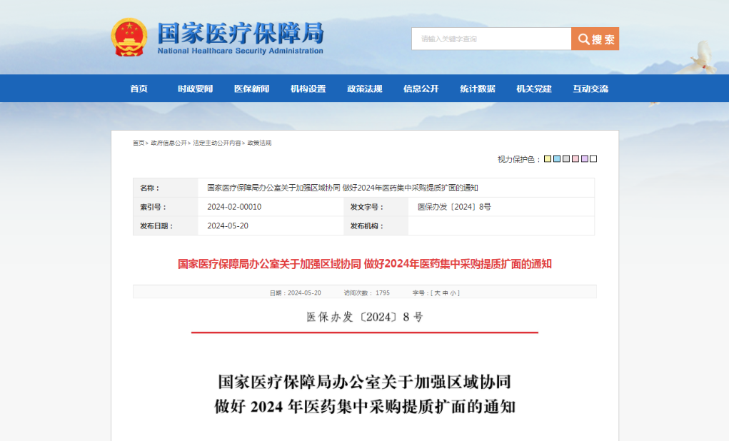 ?新華社北京5月20日電(記者徐鵬航、彭韻佳)擴(kuò)大聯(lián)盟范圍,形成全國(guó)聯(lián)盟集中采購(gòu);加強(qiáng)統(tǒng)籌協(xié)調(diào),合理確定采購(gòu)品種……國(guó)家醫(yī)保局20日發(fā)布《關(guān)于加強(qiáng)區(qū)域協(xié)同 做好2024年醫(yī)藥集中采購(gòu)提質(zhì)擴(kuò)面的通知》,對(duì)醫(yī)藥集中采購(gòu)做出新要求。